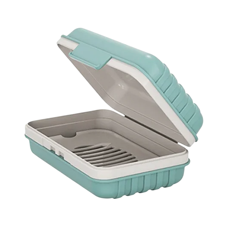 Ez a praktikus, fedeles szappantartó ideális megoldás otthoni és útközbeni mindennapi használatra. Kompakt, 12×7,6×5 cm-es méreteinek köszönhetően könnyen elfér egy utazótáskában, kézitáskában vagy hátizsákban, és a szappan mindig védve és száraz marad. A könnyű, tartós műanyag hosszú élettartamot és egyszerű tisztítást biztosít. A zárható fedél biztosítja, hogy a szappan ne nedvesedjen be és ne koszolja be a környezetét. A doboz minden szokásos szappantípushoz alkalmas, egyszerű kialakításának köszönhetően pedig bármilyen fürdőszobába és utazókészletbe beleillik.