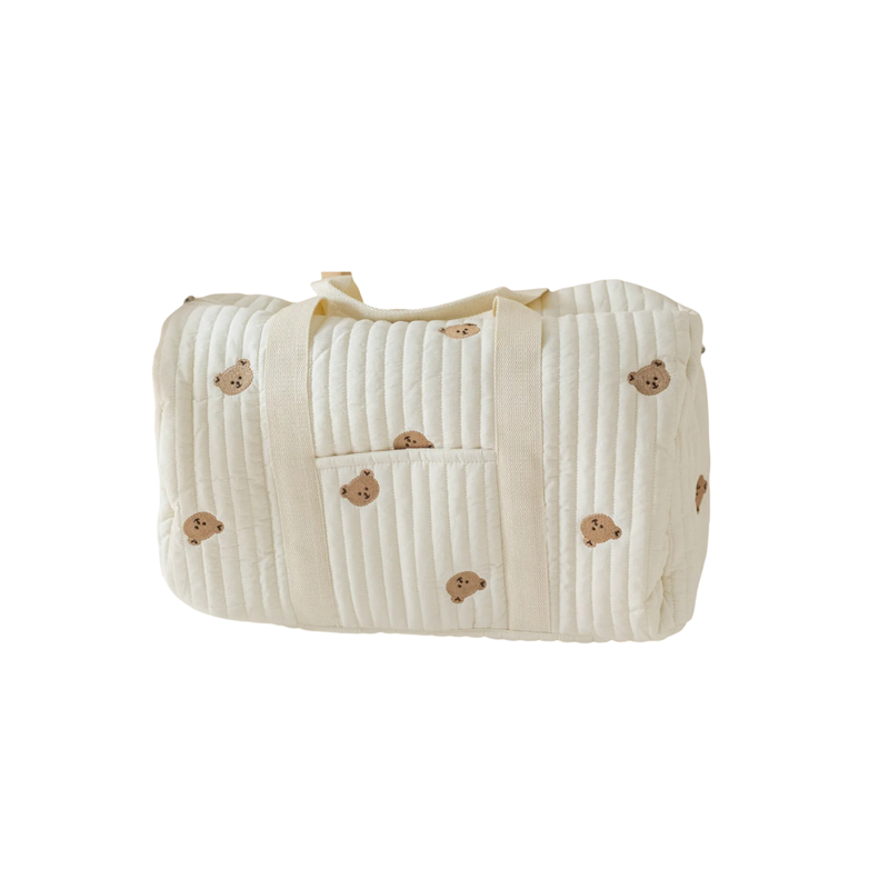 Ez a nagyméretű, aranyos mackómintás táska ideális társ minden anyuka számára. Úgy tervezték, hogy praktikus rendszerezőként szolgáljon a babakellékek számára , így rengeteg helyet kínál pelenkáknak, ruháknak, cumisüvegeknek és személyes tárgyaknak. Nagy kapacitású kialakításának és ötletes zsebelrendezésének köszönhetően mindent rendszerezve tart. A multifunkcionális kialakítás lehetővé teszi, hogy kézitáskaként, utazótáskaként vagy pelenkatartóként is használjuk. Stílusos megjelenése és kényelmes illeszkedése ideálissá teszi mindennapi használatra és hosszabb utakra egyaránt.