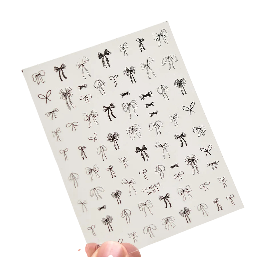 Ezek a fekete-fehér masnik elegáns hatást keltenek, és minden alkalomra megfelelőek – legyen szó egy átlagos napról, munkahelyi megbeszélésről vagy ünnepi eseményről. Könnyű alkalmazás, univerzális dizájn és hosszú élettartam teszi ezeket a matricákat minden körömkészlet elengedhetetlen kiegészítőjévé.