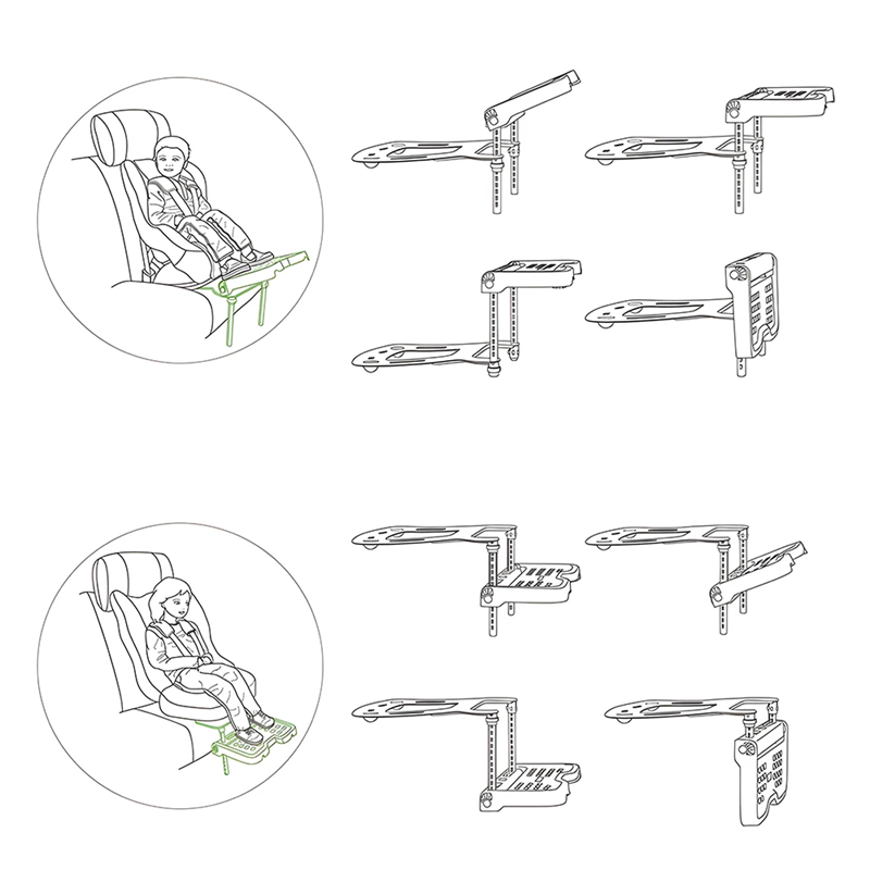 - Ergonomikus lábtartó támogatja az egészséges ülést és megelőzi a kényelmetlenséget hosszú utazások során