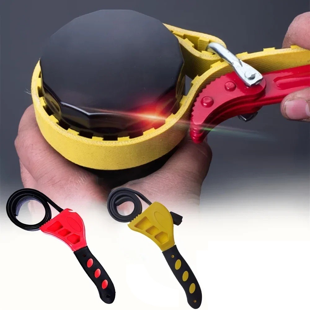 Ez a praktikus kézi szerszám az olajszűrők, fedelek és különböző kerek vagy sima alkatrészek könnyű meglazítására és meghúzására szolgál. A beállítható szíjnak köszönhetően automatikusan alkalmazkodik a megfogott objektum átmérőjéhez, és lehetővé teszi a szilárd, de kíméletes fogást a felület károsodásának kockázata nélkül. A konstrukció úgy van megtervezve, hogy a növekvő nyomás mellett a fogás tovább erősödik, ami jelentősen megkönnyíti a munkát még a erősen meghúzott szűrők esetén is. Az ergonomikus fogantyú lehetővé teszi a kényelmes egykezes irányítást, és csökkenti a fáradtságot hosszabb használat során. Az eszköz alkalmas otthoni műhelybe és professzionális autószervizbe egyaránt.