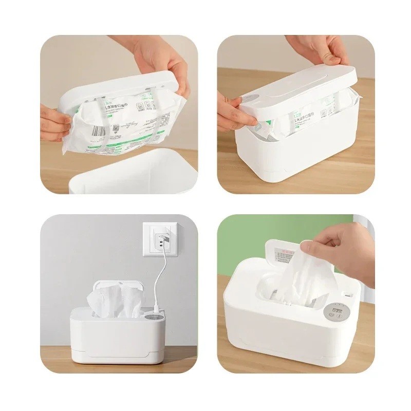 A nedves törlők melegítője kényelmes és higiénikus felfűtést biztosít az intelligens hőszabályozásnak és a könnyű kezelhetőségnek köszönhetően. Az eszköz felső fűtést alkalmaz, amely biztosítja, hogy a nedves törlők melegen maradjanak, míg az alsó rész hűvösebb hőmérsékleten marad, ezzel korlátozva a baktériumok növekedését. Az USB táplálásnak köszönhetően az eszköz használható otthon, az autóban és utazás közben is. A praktikus érintőpanel lehetővé teszi a hőmérséklet gyors beállítását 55–65 °C között, és a beépített éjszakai fény biztosítja a kényelmes használatot sötétben is. A melegítő úgy van tervezve, hogy egész nap állandó hőmérsékletet tartson és megőrizze a törlők nedvességét.