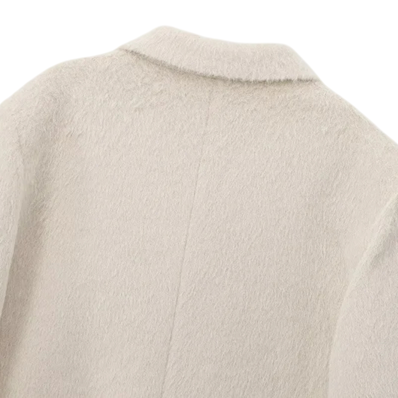 Főoldal Főoldal Ruhák és kiegészítők Női Női zakók Női bézs plüss zakó gallérral és zsebekkel Elegáns puha kabát poliészterből Egyszínű őszi és téli ruházat