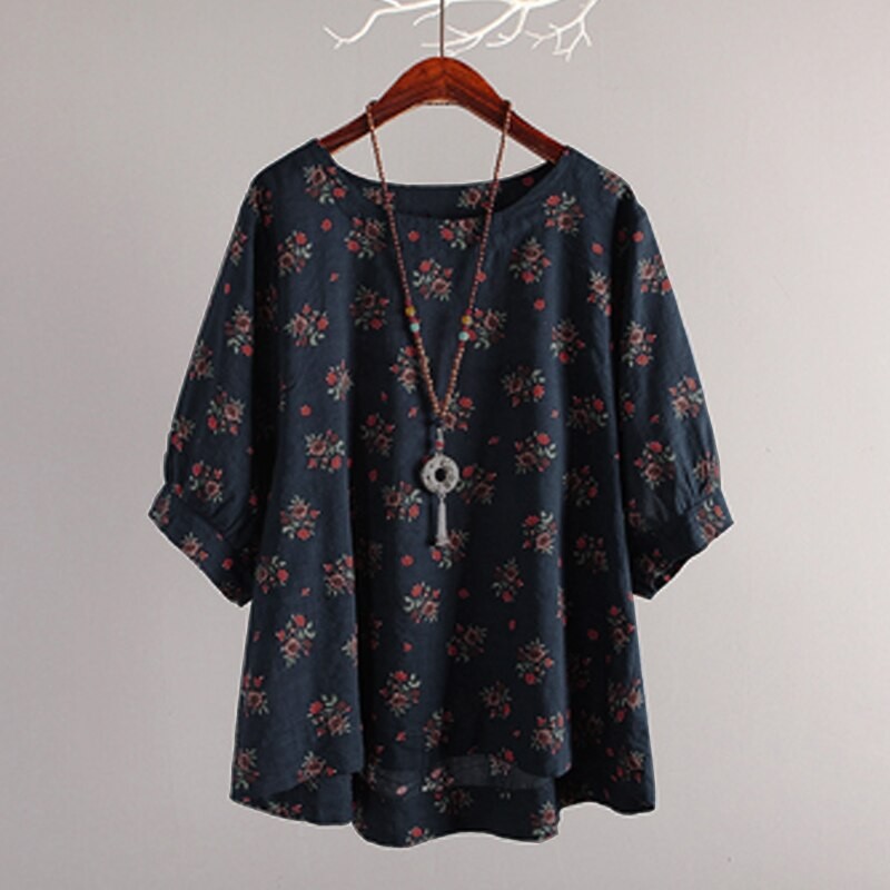 Laza és rövid feltekert ujjakkal rendelkezik.