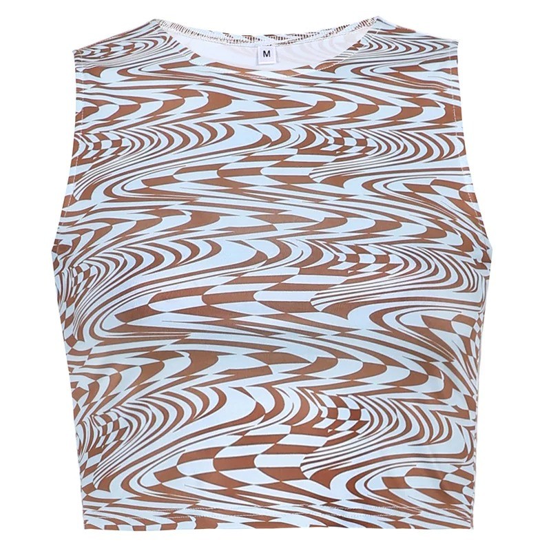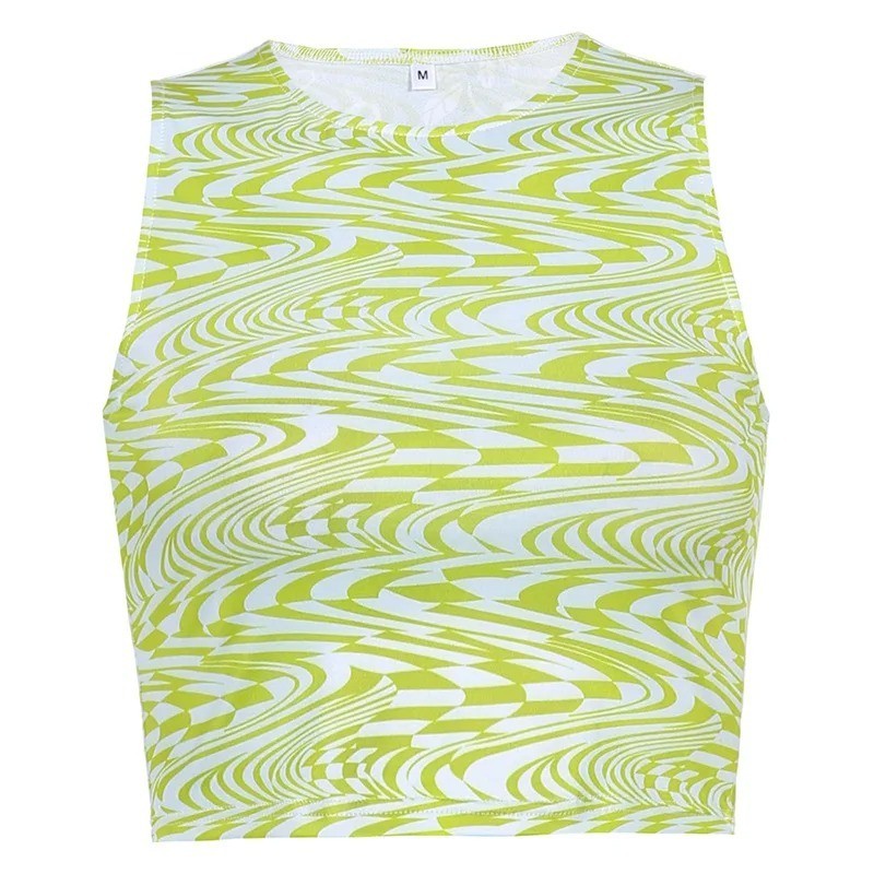 Stílusos női crop top egyszerű mintával, O nyakkivágással és széles pántokkal rugalmas anyagot és kényelmet kínál a nyárra. Teljes leírás