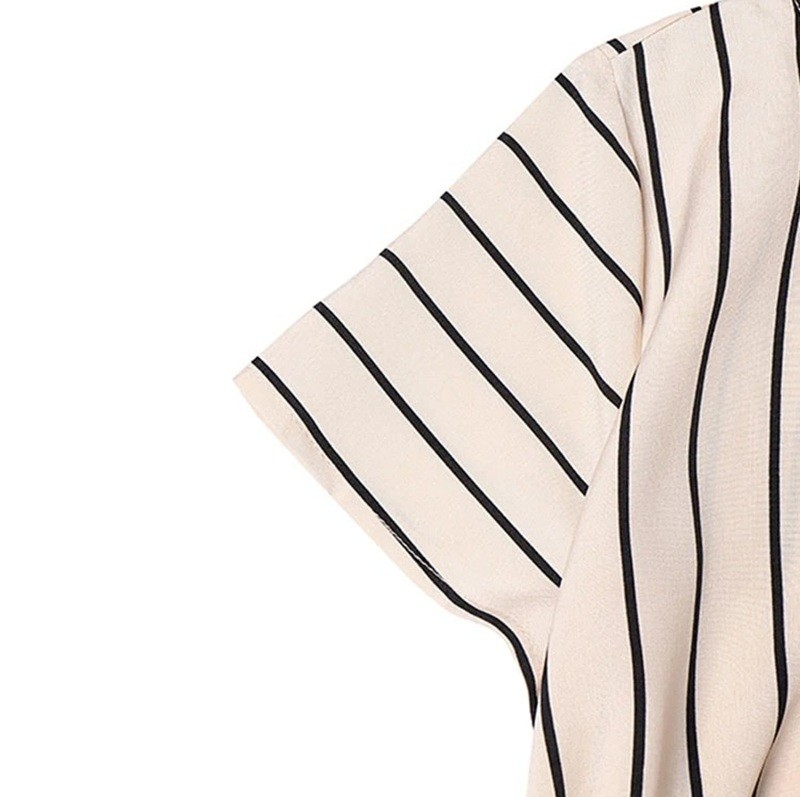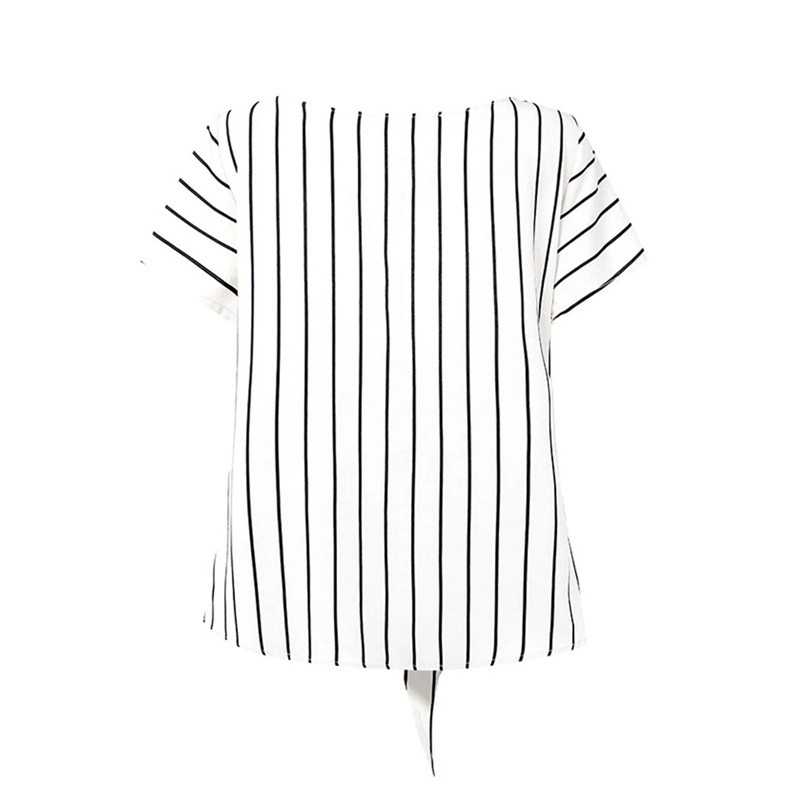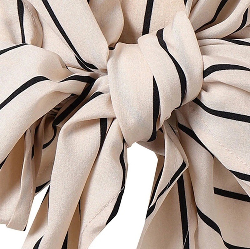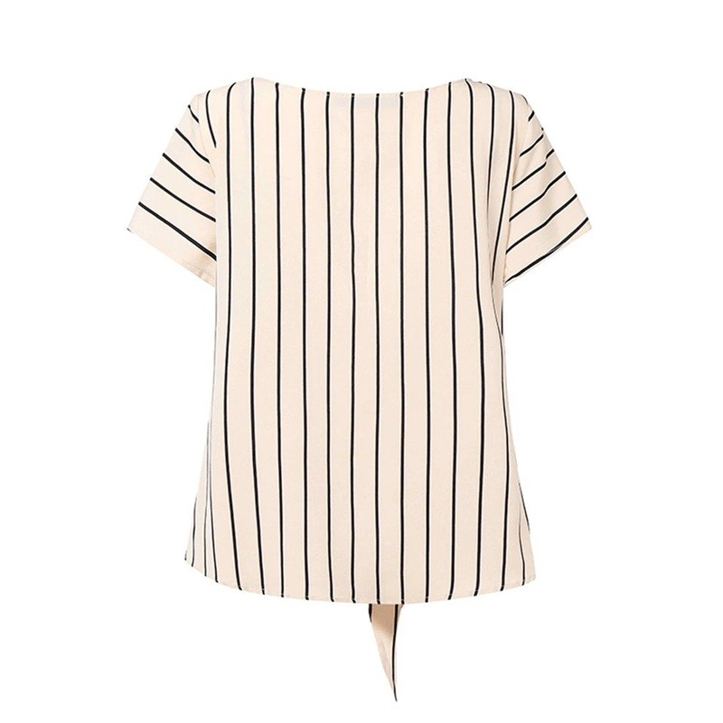 Női csíkos blúz V-nyakkal és derékra kötött masnival Elegáns, könnyű blúz mindennapi viselethez