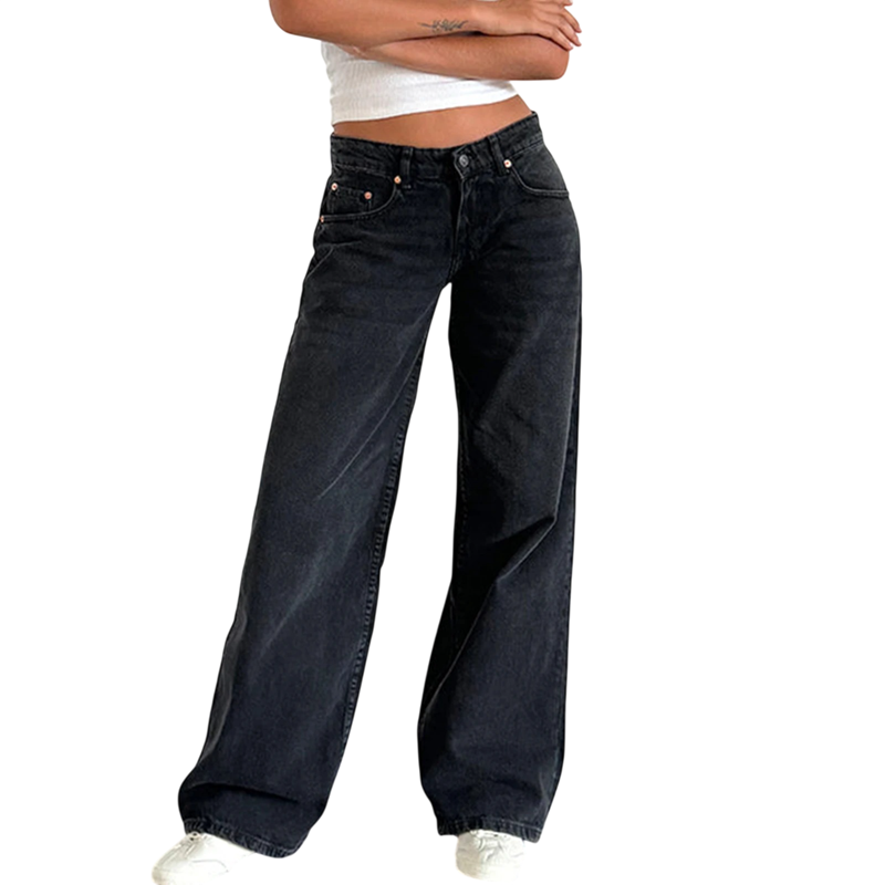 Főoldal Főoldal Ruhák és kiegészítők Női Női farmerek Női egyszínű farmernadrág Szabad szabás Zsebek Pamut Poliészter Kényelmes laza nadrág Széles szár Modern casual stílus