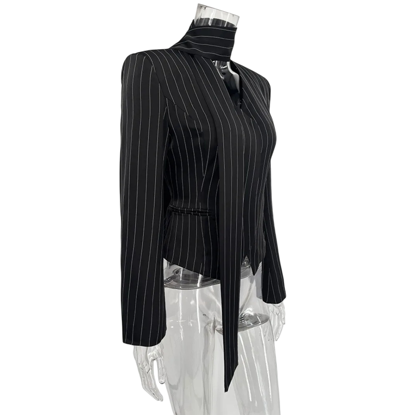 Ez a női elegáns zakó finom csíkokkal ideális választás azoknak a nőknek, akik az eleganciát a kényelemmel és a modern stílussal szeretnék ötvözni. Kiváló minőségű poliészterből készült, könnyű, kellemes tapintású és könnyen karbantartható. A klasszikus gallér formális megjelenést kölcsönöz, míg a diszkrét csíkos minta érdekessé teszi és karcsúbb sziluettet teremt. Egyszínű kivitelezésének köszönhetően finom részletekkel különböző alkalmakra alkalmas – munkába, üzleti tárgyalásokra és társadalmi eseményekre.