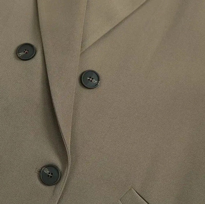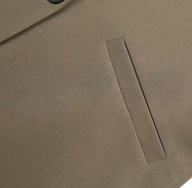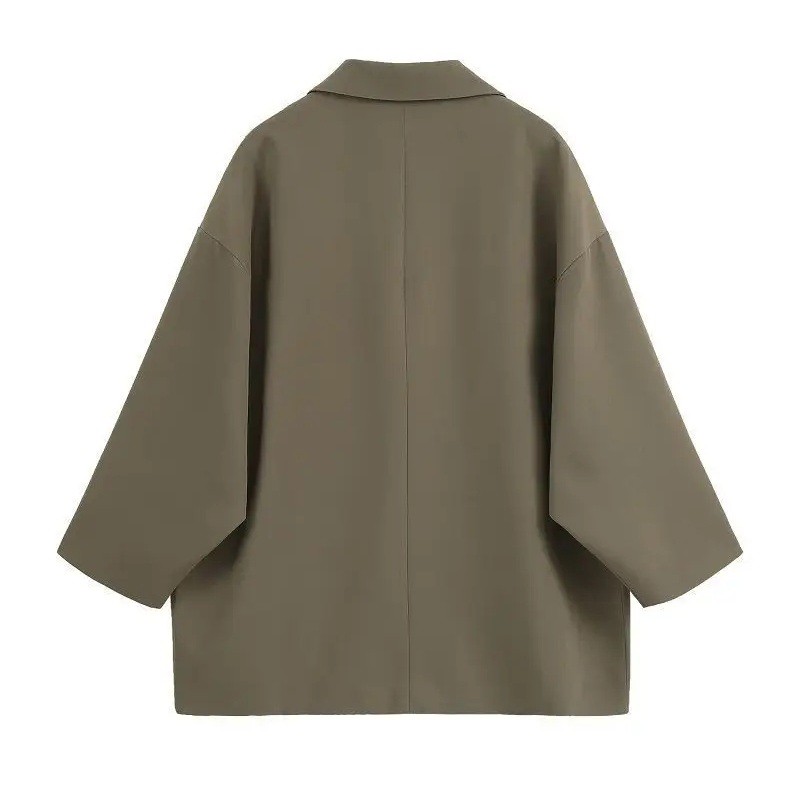 • Szabás: elegáns gallérral, zsebekkel és gombos záródással
