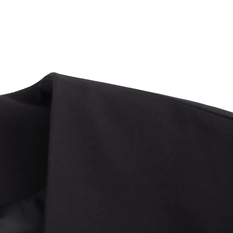 Ez a női fekete elegáns zakó a stílus, kényelem és nőiesség tökéletes ötvözete. Kiváló minőségű poliészterből készült, amely biztosítja a tartósságot és a könnyű karbantartást, ideális választás a mindennapi viselethez és a formális alkalmakhoz. A V-kivágás elegáns megjelenést kölcsönöz a zakónak, és szép vonalat alkot a nyaknál, míg a megkötős pánt a deréknál lehetővé teszi a szabás testre szabását, és gyönyörűen kiemeli a sziluettet.