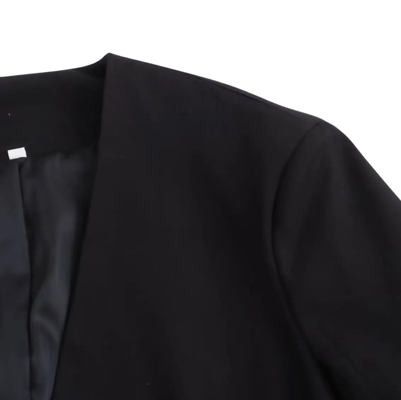 Az egyszínű kivitel klasszikus fekete színben időtlen jelleget ad a zakónak, amely különböző öltözetekhez illik – szoknyákhoz, farmerekhez és elegáns nadrágokhoz egyaránt. Univerzális dizájnjának köszönhetően a zakó a kedvenc darabjává válik a munkában, találkozókon és szabadidőben.