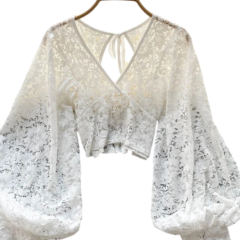 Női félig átlátszó blúz Univerzális méret V-kivágás Hosszú ujjú Ráncolás Nyakba köthető