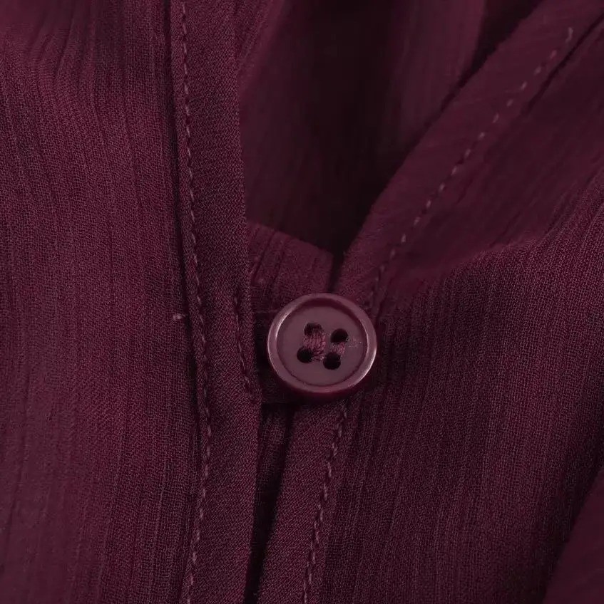 Főoldal Főoldal Ruhák és kiegészítők Női Női ingek Női elegáns ingek Női ing hosszú ujjú V-nyakú Elegáns ing fodrokkal Gombos záródás Könnyű stílusos top mindennapi viselethez Poliészter