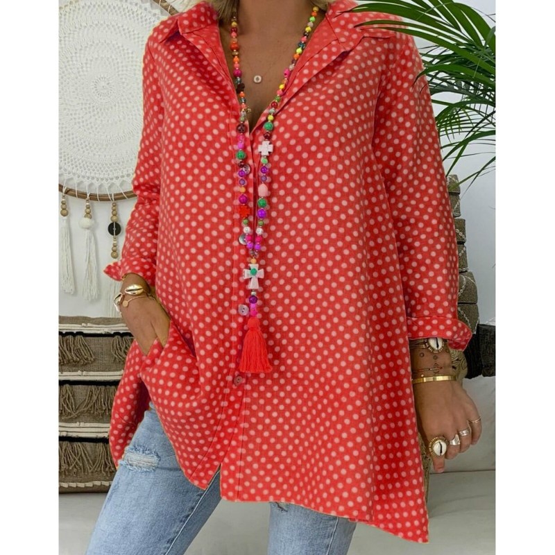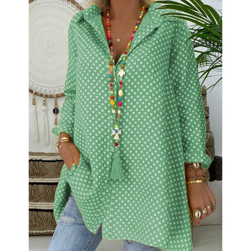 Kellemes anyagból készült bő, pöttyös ing.