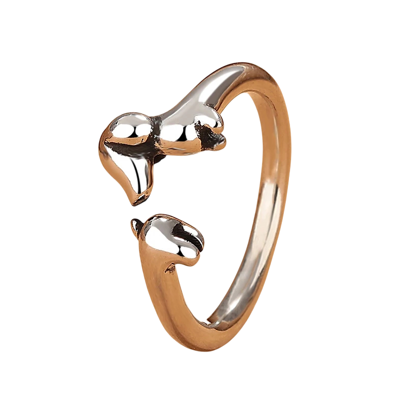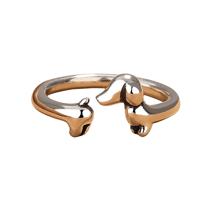 Női jelembőr gyűrű, nyitott állítható gyűrű, univerzális méret, rézötvözet, aranyos állatos dizájn, kutyabarátoknak Ez az eredeti női gyűrű, jelembőr formájában, tökéletes kiegészítő mindazok számára, akik szeretik a kutyákat és szeretnék stílusukat valami különlegessel feldobni. A nyitott kialakításának köszönhetően könnyen alkalmazkodik az ujj méretéhez és kényelmes a mindennapi viselethez. Az aranyos állatos motívum első pillantásra magára vonja a figyelmet, és játékos hangulatot ad az öltözéknek. A gyűrű rézötvözetből készült, amely biztosítja a tartósságot és a hosszú élettartamot. Tökéletes apró ajándék vagy személyes talizmán a négylábú barátok szerelmeseinek.