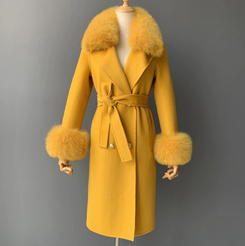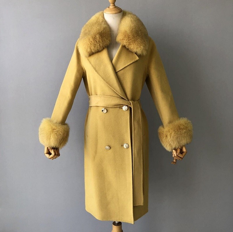 Anyaga: kasmír gyapjú, rókaprém
