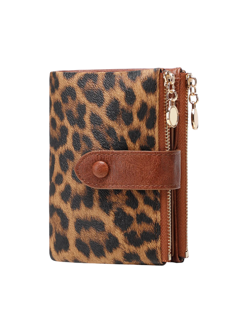 Női kinyitható pénztárca 13 x 9 x 3 cm Kártyák és készpénz tárolására Műbőr Leopárdmintás Stílusos kiegészítő