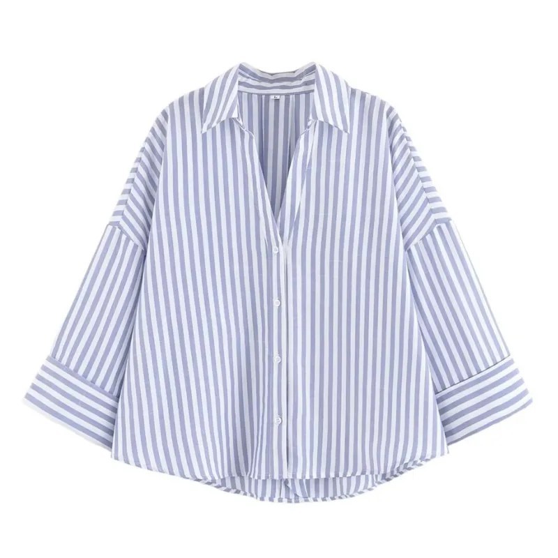 Főoldal Főoldal Ruhák és kiegészítők Női Női ingek Női szabadidős ingek Női könnyű lenvászon ing gallérral, széles ujjakkal, aszimmetrikus szegéllyel, gombos rögzítéssel, légies, természetes anyagból készült blúz.