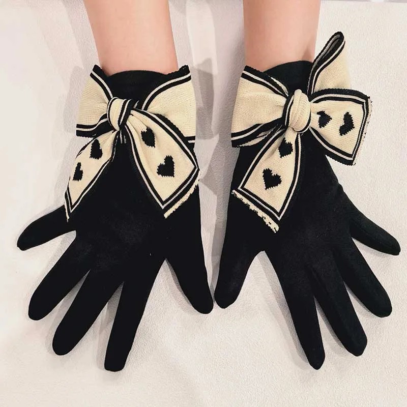 Női kötött érintőkesztyű masnival univerzális méret Elegáns téli kesztyű poliészterből és elasztánból nőknek