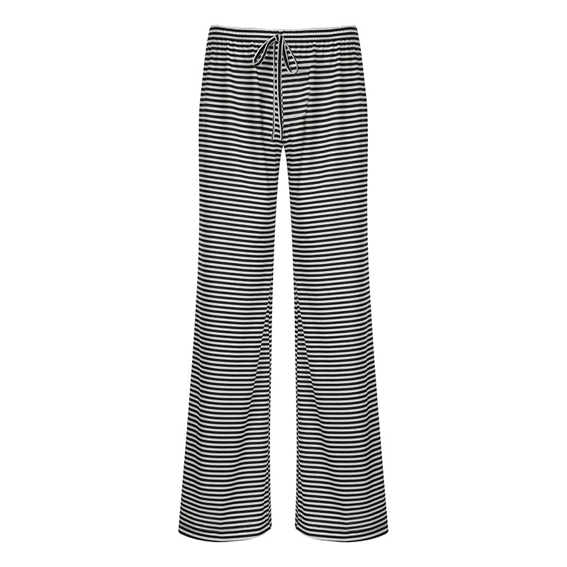 Csíkos mintás, rugalmas derékkal és fűzős, lezser női nadrág. Ideális mindennapi viseletre meleg időben. Teljes leírás