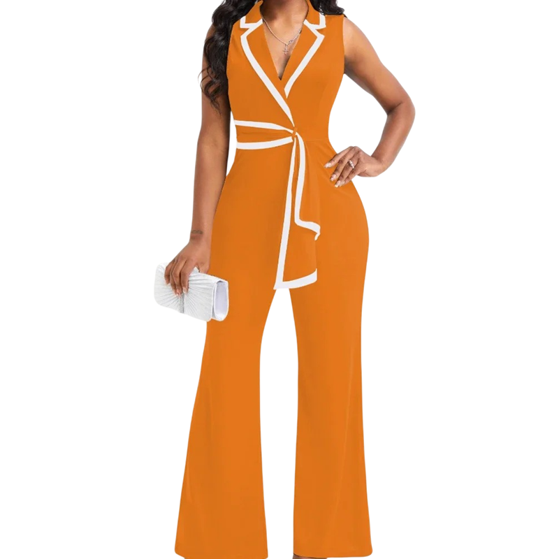 Női overál Egyszínű modell Széles nadrág Széles pántok Gallér Derékban megkötős V kivágás Poliészter Spandex