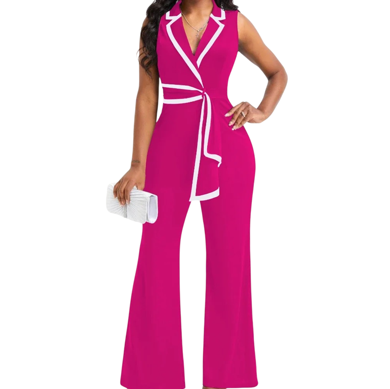 Ez a női overál azoknak a nőknek készült, akik a stílust maximális kényelemmel szeretnék ötvözni. Az egyszínű kivitel elegáns és időtálló megjelenést kölcsönöz, így könnyen kombinálható lábbelikkel és kiegészítőkkel. A V kivágás kiemeli a női sziluettet, és kifinomult megjelenést ad a modellnek. A praktikus gallér elegánsabb jelleget kölcsönöz az overálnak, amely alkalmas formálisabb eseményekre is. A poliészter és spandex kombinációja rugalmasságot, könnyedséget és kellemes viseletet biztosít egész nap.