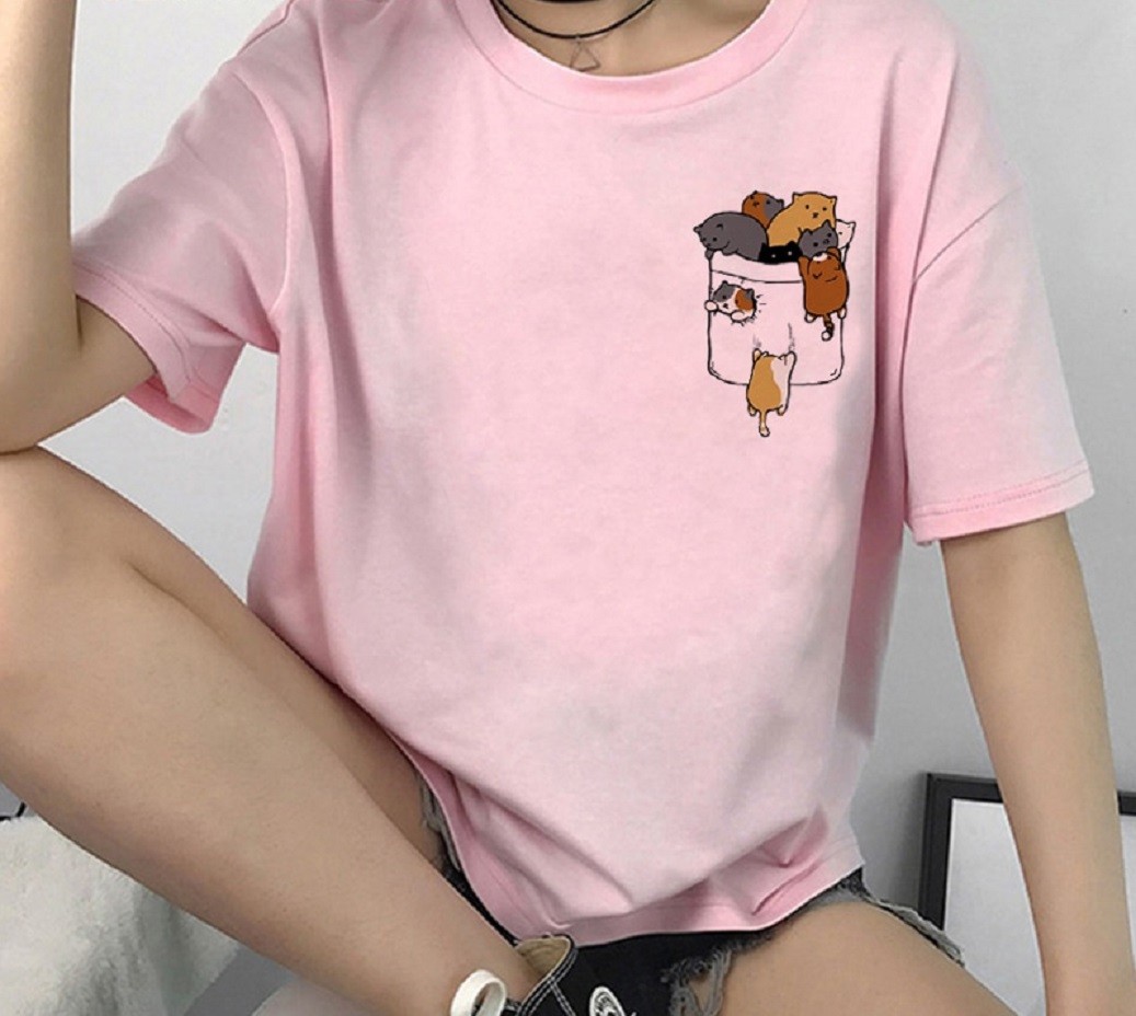Női póló macskák nyomtatásával