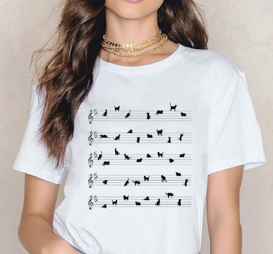 Női póló zenei motívummal