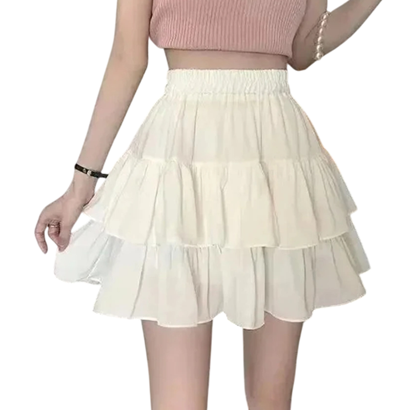 Női rakott A-vonalú szoknya fodros díszítéssel Elegáns rakott szoknya rugalmas derékkal Könnyű nyári szoknya mindennapi viseletre