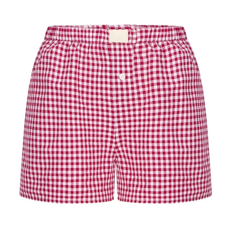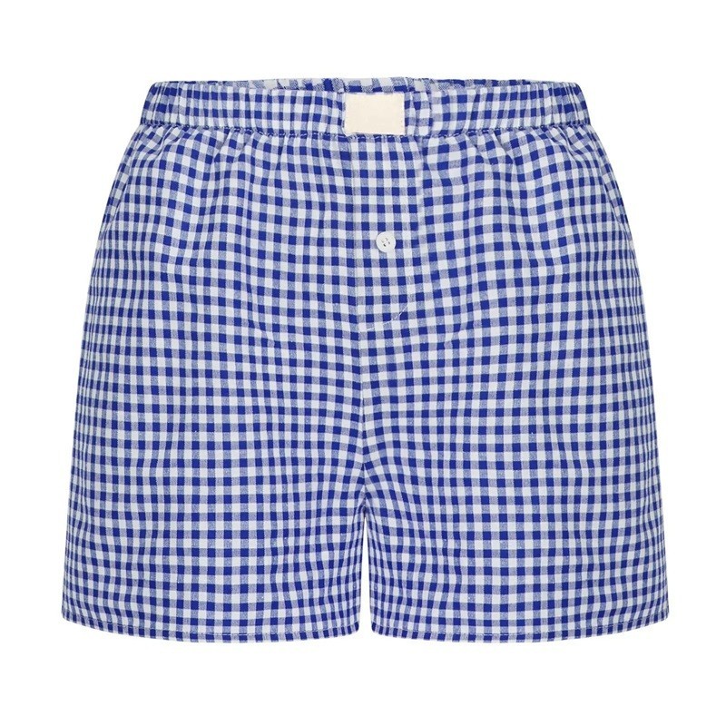 Kényelmes szabadidős sortok rugalmas derékkal és modern kockás mintával, ideális nyárra, otthoni viseletre és szabadidős tevékenységekre. Teljes leírás