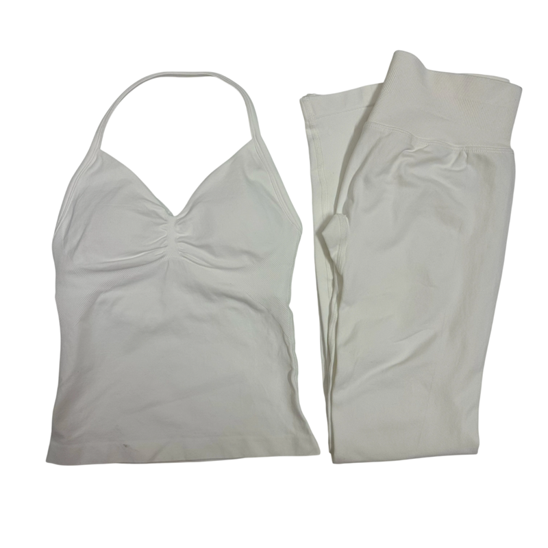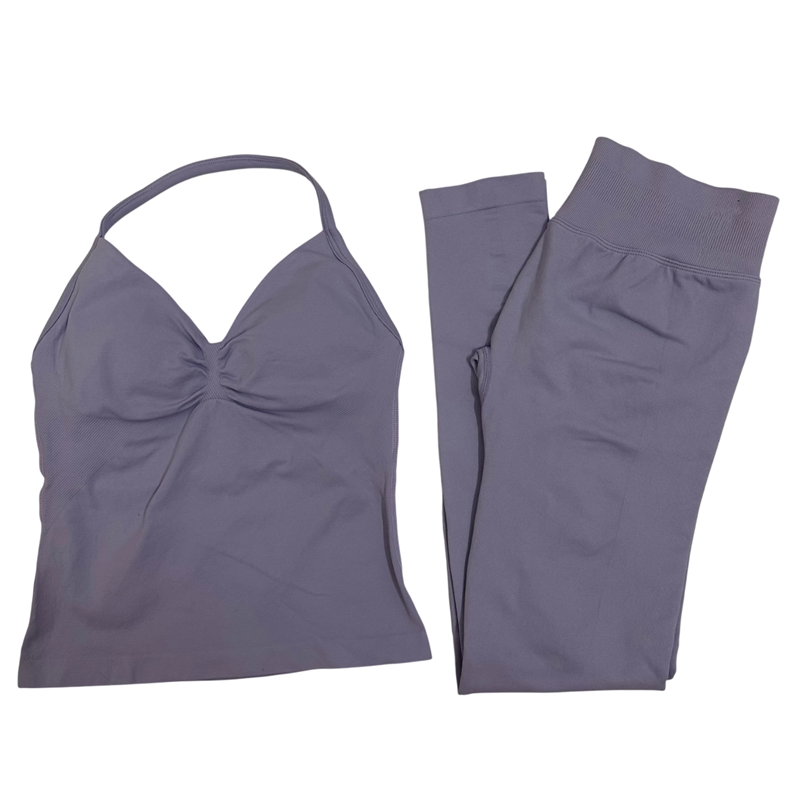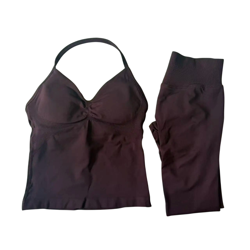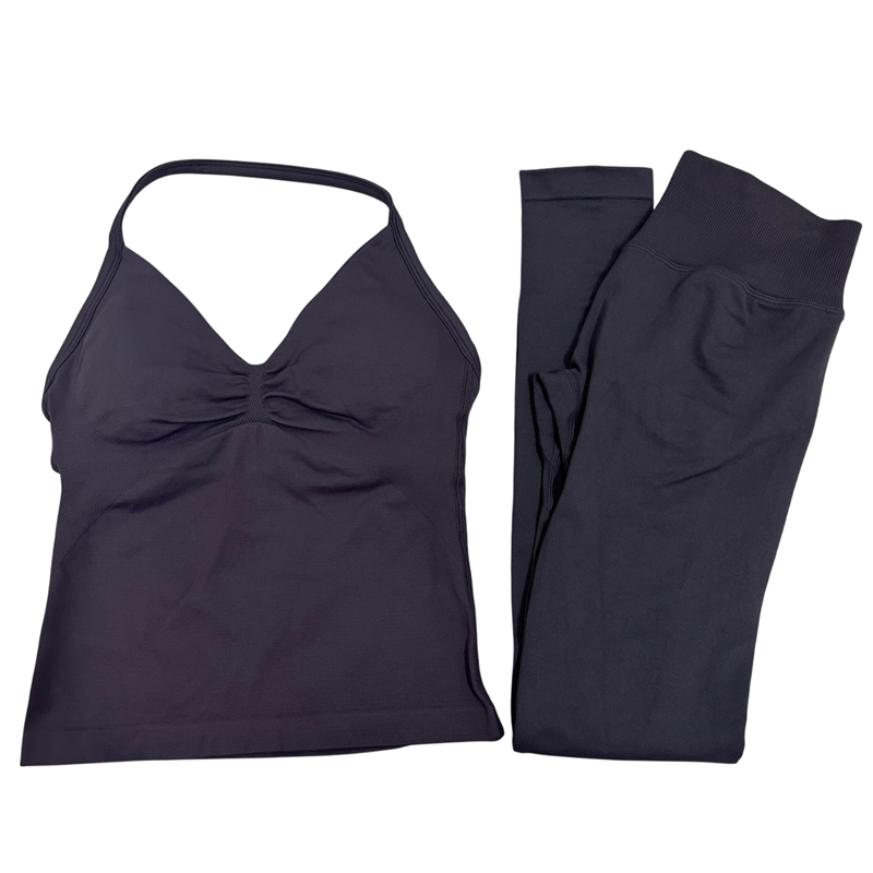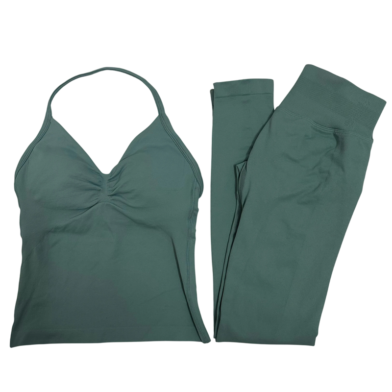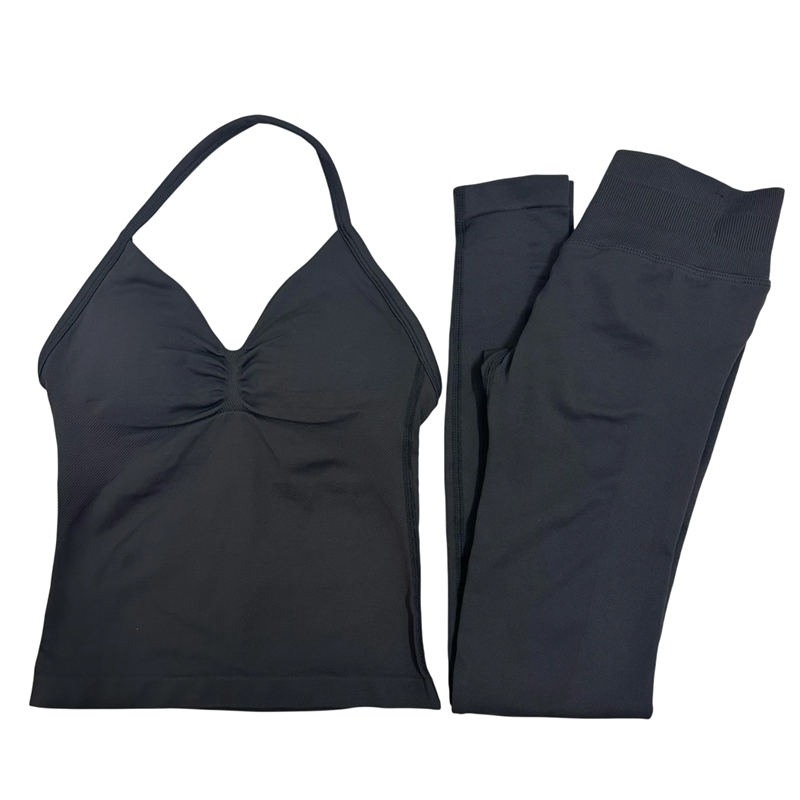 Női sportos szett leggingszel és topával, egyszínű, nylon, poliészter, kényelmes és stílusos fitneszhez és edzéshez Ez a női sportos szett ideális választás női számára, akik minőségi ruházatot keresnek fitneszhez és edzéshez. A szett tartalmaz leggingset és topot, melyek kiváló minőségű anyagból – nylonból és poliészterből – készültek, amelyek optimális rugalmasságot, légáteresztő képességet és tartósságot biztosítanak. Ez az anyag ideális intenzív edzésekhez, futáshoz, jógához, pilateshez vagy bármilyen más mozgásformához. A szett egyszerű, egyszínű dizájnja modern és könnyen kombinálható más sportos darabokkal. A leggings ideális szabása maximális mozgásszabadságot biztosít, míg a top kényelmet és támogatást nyújt minden edzés során. Ez a szett ideális női számára, akik szeretnének jól kinézni és kényelmesen érezni magukat minden sporttevékenység során.
