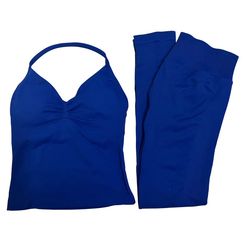 Női sportos szett leggingszel és topával nylonból és poliészterből. Ideális fitneszhez, edzéshez vagy szabadidőhöz, kényelmes és rugalmas anyag. Teljes leírás