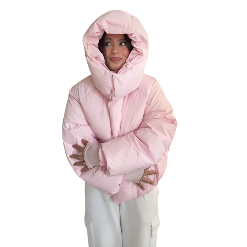 Meleg női téli kabát kapucnival, magas nyakkal, zsebekkel és cipzárral. Ötvözi a kényelmet, a hideg ellen védelmet és a modern téli megjelenést. Teljes leírás