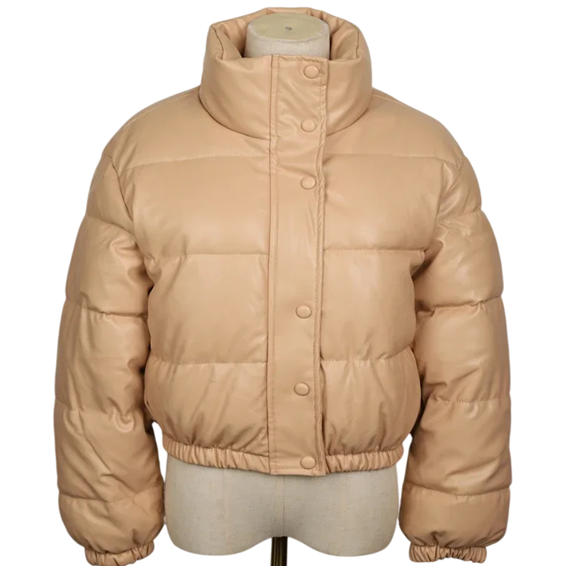 Elegáns női téli kabát magas nyakkal, zipzárral és patentokkal, valamint tartós poliészter kivitelben. Meleg és kényelmes modell, ideális téli időjáráshoz. Teljes leírás