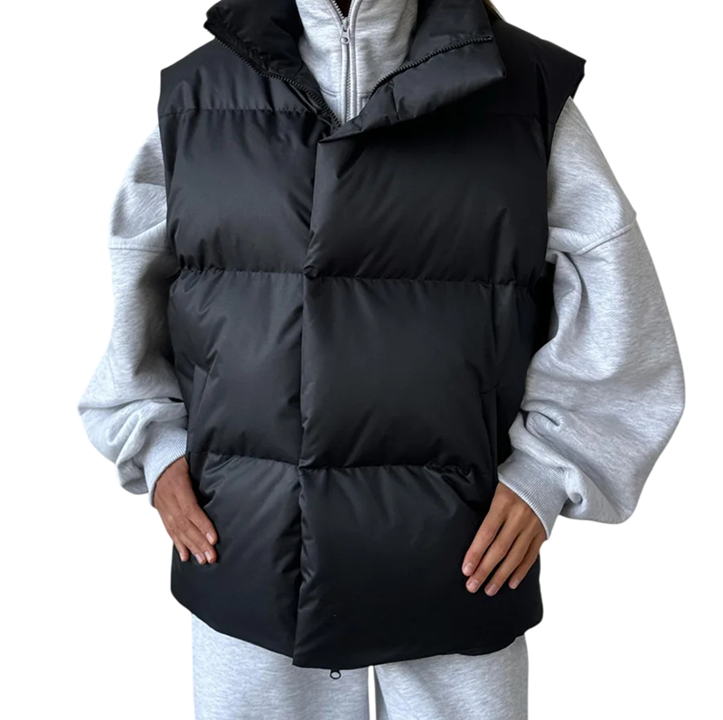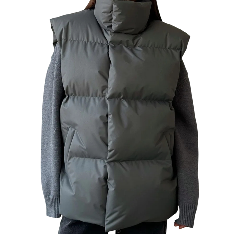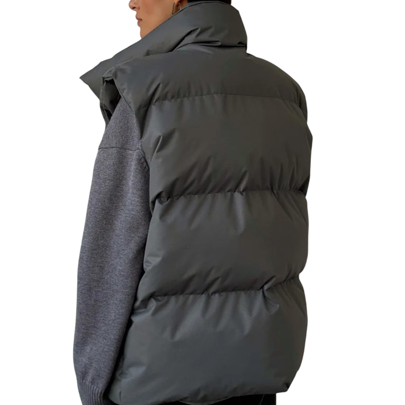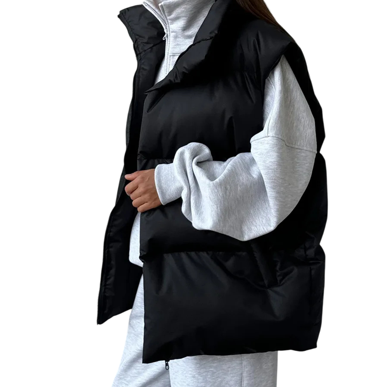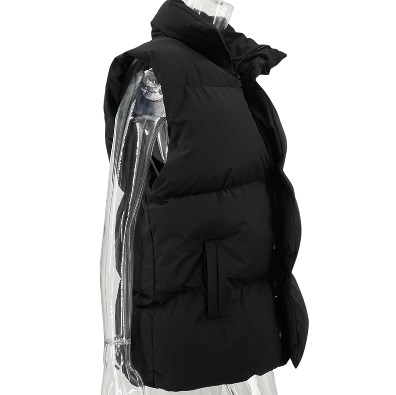 Női téli mellény garbóval és cipzárral Egyszínű meleg mellény pamutból és poliészterből Stílusos mellény a hűvös téli napokra