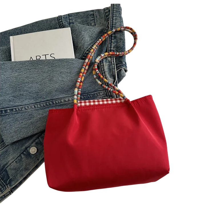 Női válltáska piros Kockás minta Könnyű textil táska mindennapokra Nylon és poliészter anyag Divatos kiegészítő