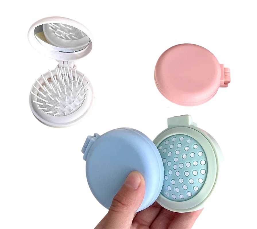 Főoldal Főoldal Egészség és szépség Haj Fésűk Összecsukható stílusos fésű tükörrel 6,5 x 7,5 cm Hordozható masszázsfésű a haj kifésüléséhez Kompakt utazófésű