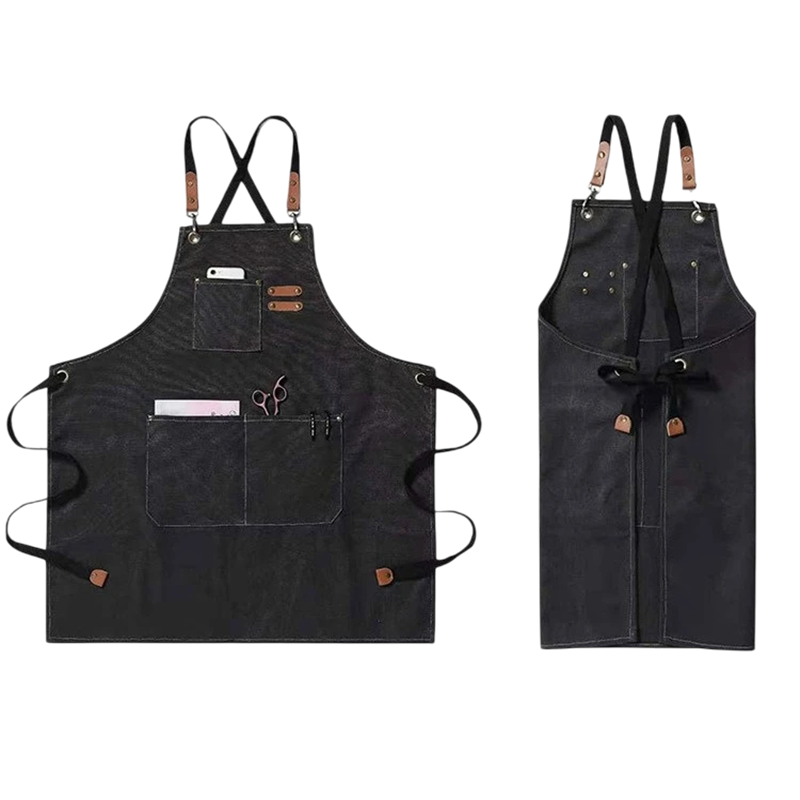 A kötény ötvözi a funkcionalitást és az egyszerű modern stílust, amely bármilyen belső térhez illik. A nyakpánt állíthatósága és a praktikus elülső zsebek növelik a kényelmet és a hatékonyságot a munka során.