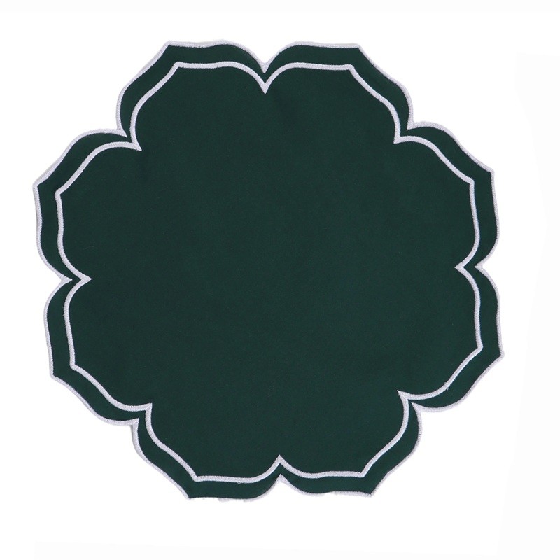 Főoldal Főoldal Otthon, háztartás Konyhába Terítés Tányéralátétek Pamut terítő 40,6 x 40,6 cm Virágforma íves szegéllyel Dekoratív textil terítő az asztalra 100% pamut