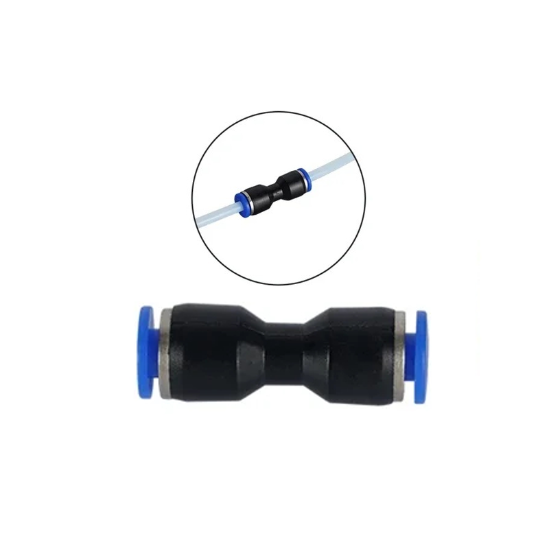 A csatlakozó telepítése nagyon egyszerű, és nem igényel különleges szerszámokat. A cső végeit csak be kell dugni a csatlakozó mindkét oldalára, ahol a belső rögzítő elem szorosan tartja őket. Helyes behelyezés esetén a csatlakozás tömített, nyomásálló, és egyúttal lehetővé teszi a könnyű újracsatlakozást, ha szükséges a szerelvény módosítása vagy a cső cseréje. A csatlakozó magas munkaterhelésre lett tervezve, és akár 1 MPa körüli nyomást is elvisel, így alkalmas a filament gyors táplálására és hosszú nyomtatási feladatokra. A csatlakozó teste erős műanyagból készült, amely jól ellenáll a mechanikai igénybevételnek és a 3D nyomtatók általános üzemelési hőmérsékleteinek.