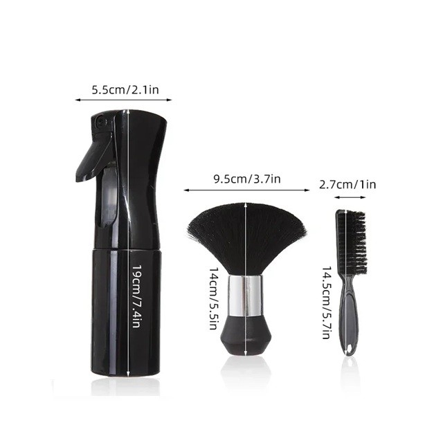 Professzionális borbély készlet 3 az 1-ben Spray 19 x 5,5 cm Ecset 14 x 9,5 cm Kefe 14,5 x 2,7 cm Borbély styling kiegészítők
