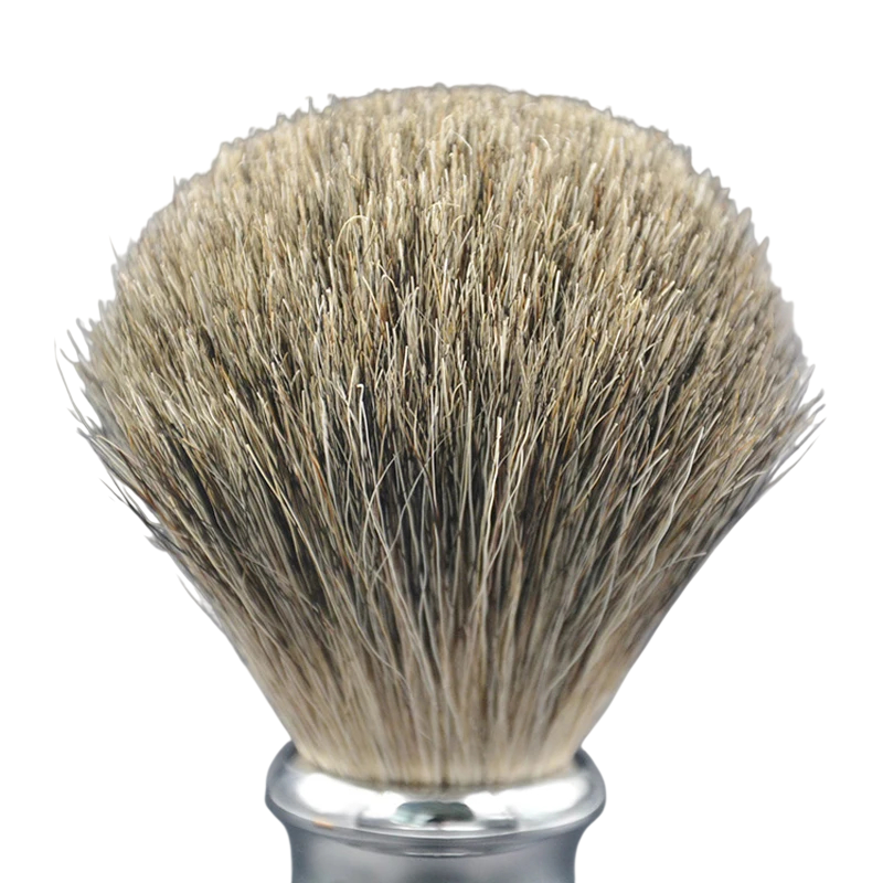 A professzionális borotválkozó ecset ideális kiegészítő a mindennapi nedves borotválkozáshoz és a szakáll és bőr rendszeres ápolásához. A kiváló minőségű természetes anyagok használatának köszönhetően finom és egyenletes hab vagy szappan felvitelét biztosítja. A dús békebeli szőr remekül felszívja a vizet, és lehetővé teszi a gazdag krémes hab létrehozását, amely lágyítja a szakállat és előkészíti a bőrt a sima borotválkozásra. Az ergonomikus műgyanta fogantyú és a robosztus fém alap kényelmes fogást és hosszú élettartamot biztosít. Az ecsetet úgy tervezték, hogy megfeleljen a magas igényű felhasználók és a szakemberek elvárásainak.