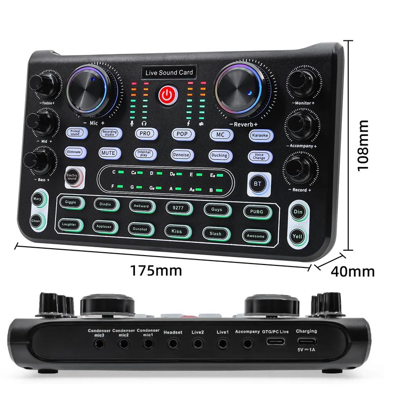 Professzionális hangkártya 17,5 x 10,8 x 4 cm Élő audio keverőpult USB-C USB-A Audio interfész felvételhez és streameléshez