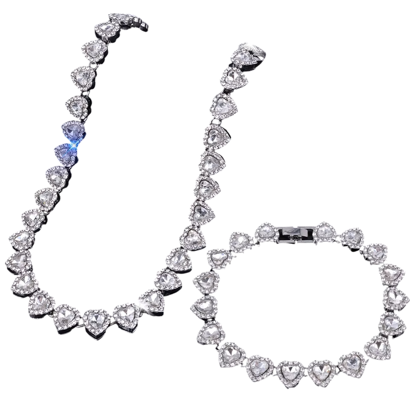 Ragyogó nyaklánc 45 cm és karkötő 20 cm Női csillogó ékszerek cinkötvözetből Fényes ragyogó ajándék nőknek