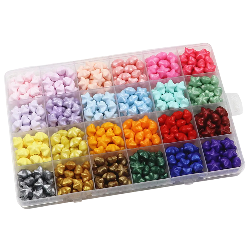 Ez a pecsétgyöngy készlet kezdők és tapasztalt pecsételő felhasználók számára egyaránt alkalmas. Az egyenletes méretű csillagok garantálják a következetes eredményeket felesleges viaszpazarlás nélkül. A gazdag színpalettának köszönhetően eredeti kombinációk hozhatók létre különböző alkalmakra. A növényi viasz stabil tulajdonságokat biztosít a melegítés és a későbbi szilárdulás során. Ha minőségi és esztétikus anyagot keresel viaszpecsétek készítéséhez, ez a készlet magas követelményeknek felel meg a megjelenés és a funkcionalitás terén.