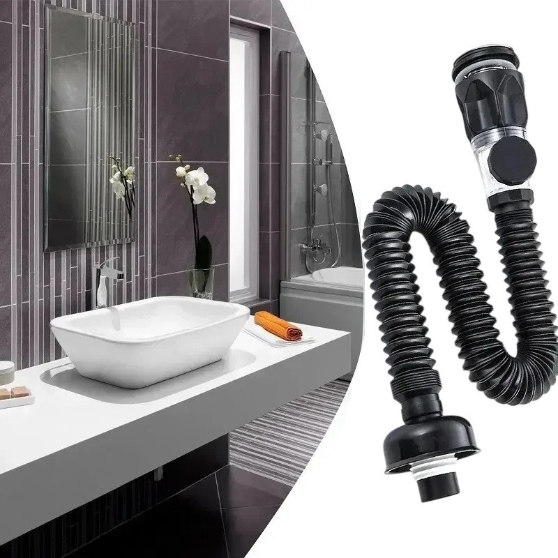 A tartós anyag, rugalmasság és szagvédelem kombinációjának köszönhetően ez a lefolyócső praktikus kiegészítője minden háztartásnak. Megbízható vízelvezetést biztosít, miközben tiszta környezetet teremt a konyhában vagy fürdőszobában. A modern fekete felület különböző stílusokhoz és belső terekhez illik.