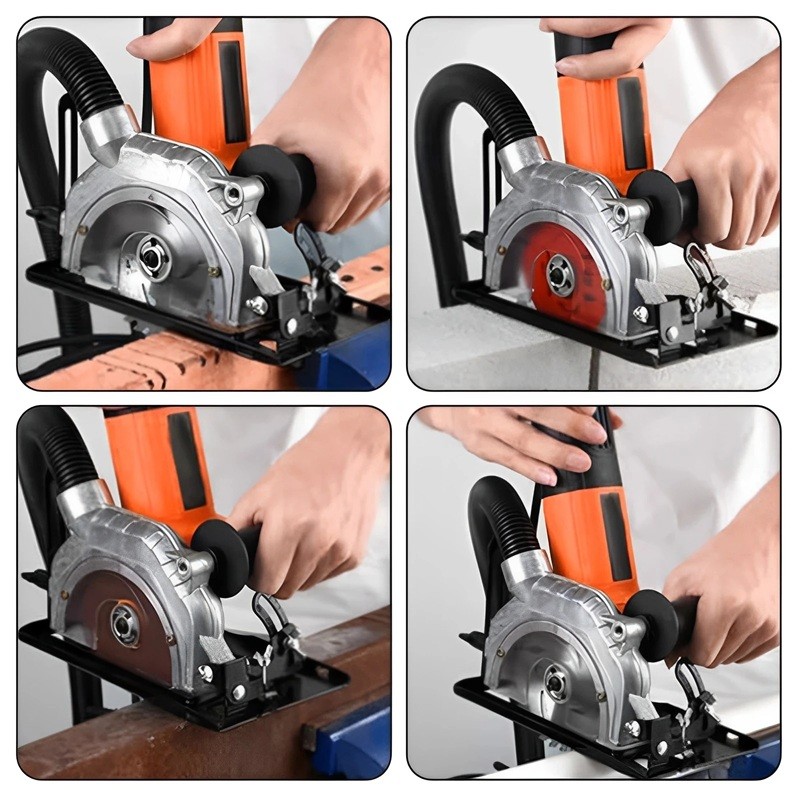 Ez a készlet ideális mindenkinek, aki a sarokcsiszolóból pontos vágót szeretne készíteni különböző építési és felújítási munkákhoz. A vezetőalapnak és az oldalsó fogantyúnak köszönhetően sokkal jobb kontrollt kap a szerszám felett, ami a vágás minőségén is megmutatkozik. A zárt vágóburkolat porelszívó rendszerével jelentősen növeli a biztonságot és a munkakényelmet – a környezet tisztább marad, és a felhasználó kevésbé van kitéve a por hatásának. Összességében egy átgondolt készlet, amely képes szélesíteni a sarokcsiszoló lehetőségeit és csökkenteni a különálló asztali vágó költségeit. Ha biztonság, pontosság és praktikusság kombinációját keresi egyben, ez a sarokcsiszoló átalakító 125 mm-es vágóvá nagyszerű választás a házi műhelyhez és a professzionális használathoz.