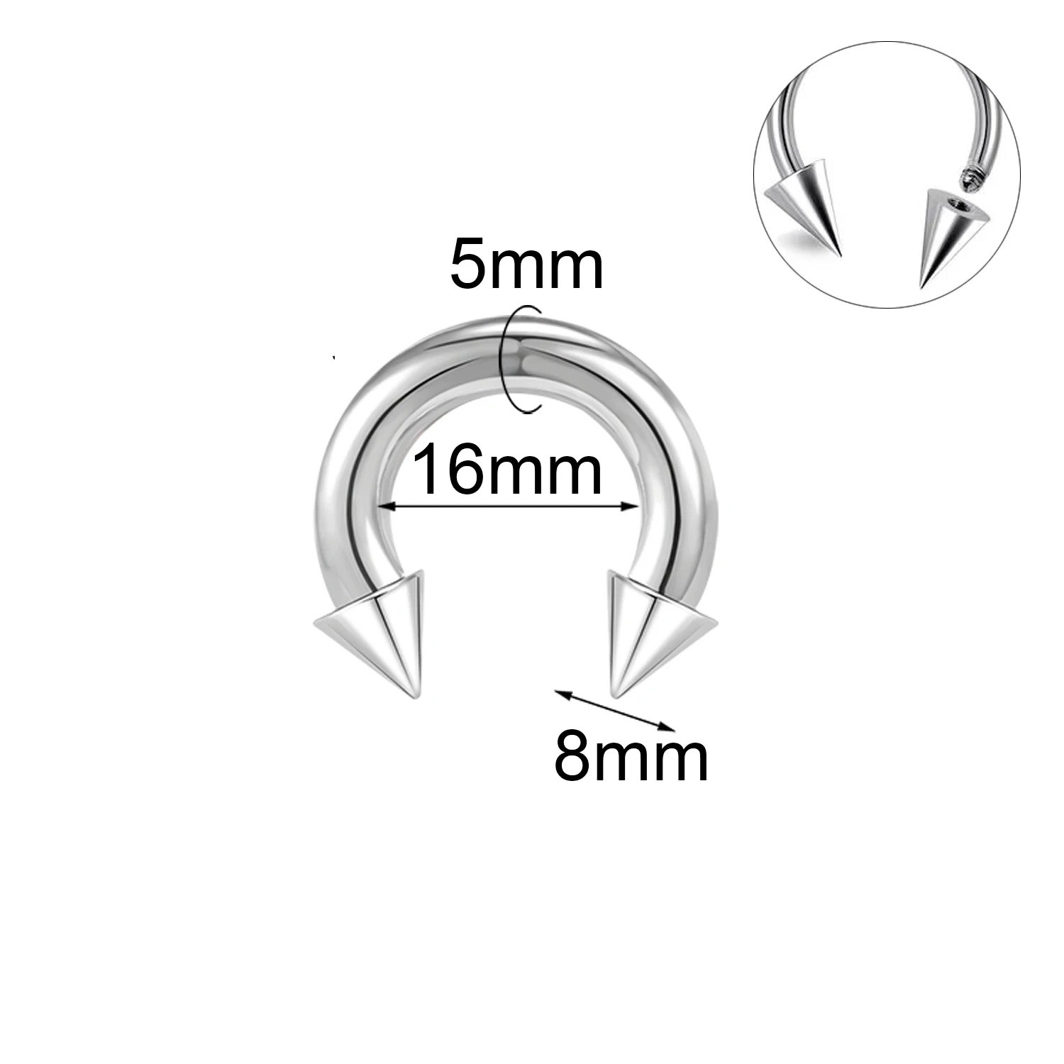 A hegyes végű ívelt septum piercing hosszú távon népszerű a sokoldalúsága és tiszta vizuális hatása miatt. A hegyek az ív végén élesebb kifejezést adnak az ékszernek, amely különösen a nagyobb méretek esetén érvényesül. Az 5 x 16 x 8 mm-es pontos arányok biztosítják, hogy a piercing ne tűnjön egyensúlytalannak, és jól illeszkedjen az orrsövény területére. A rozsdamentes acél gyakran választott anyag a piercing ékszerekhez, köszönhetően semleges megjelenésének és tartós formastabilitásának. Ez a septum piercing megbízható választás azok számára, akik a hangsúlyosság és az egyszerűség kombinációját keresik.