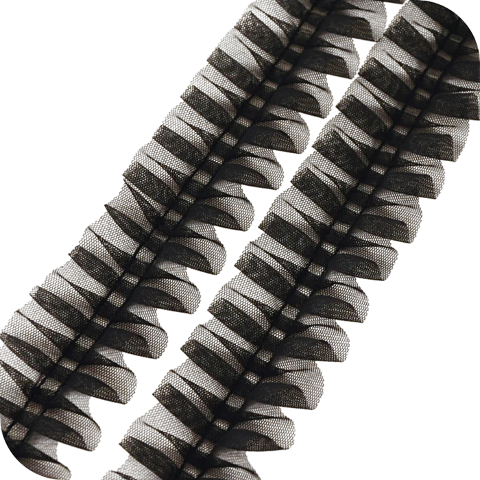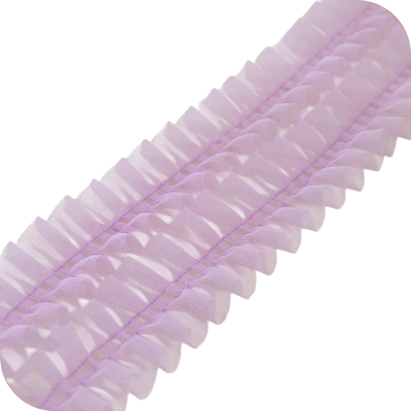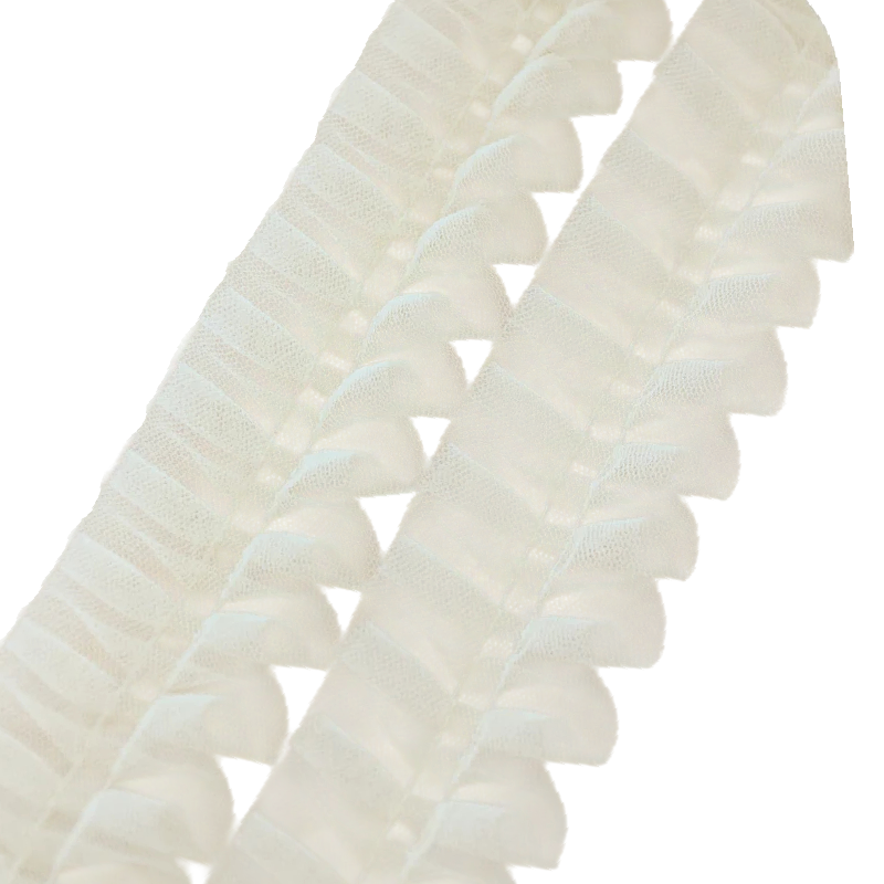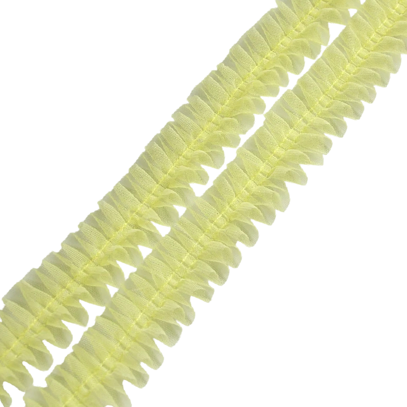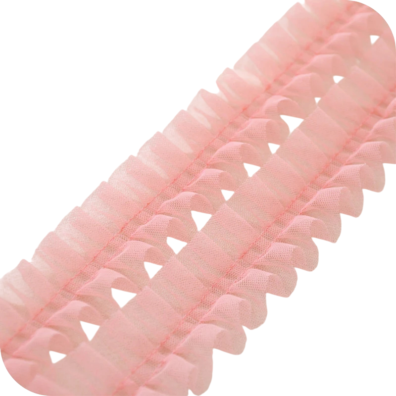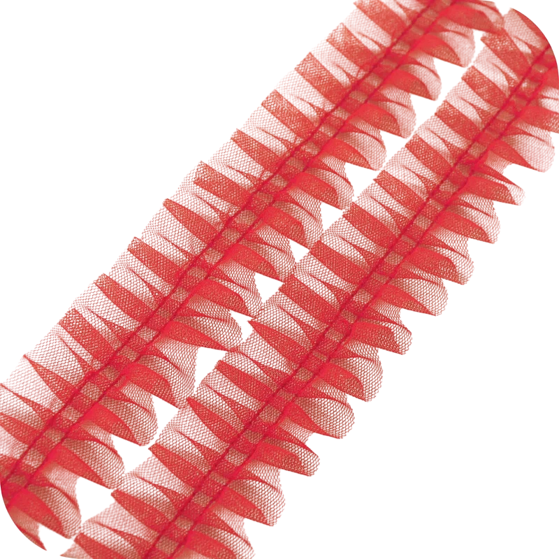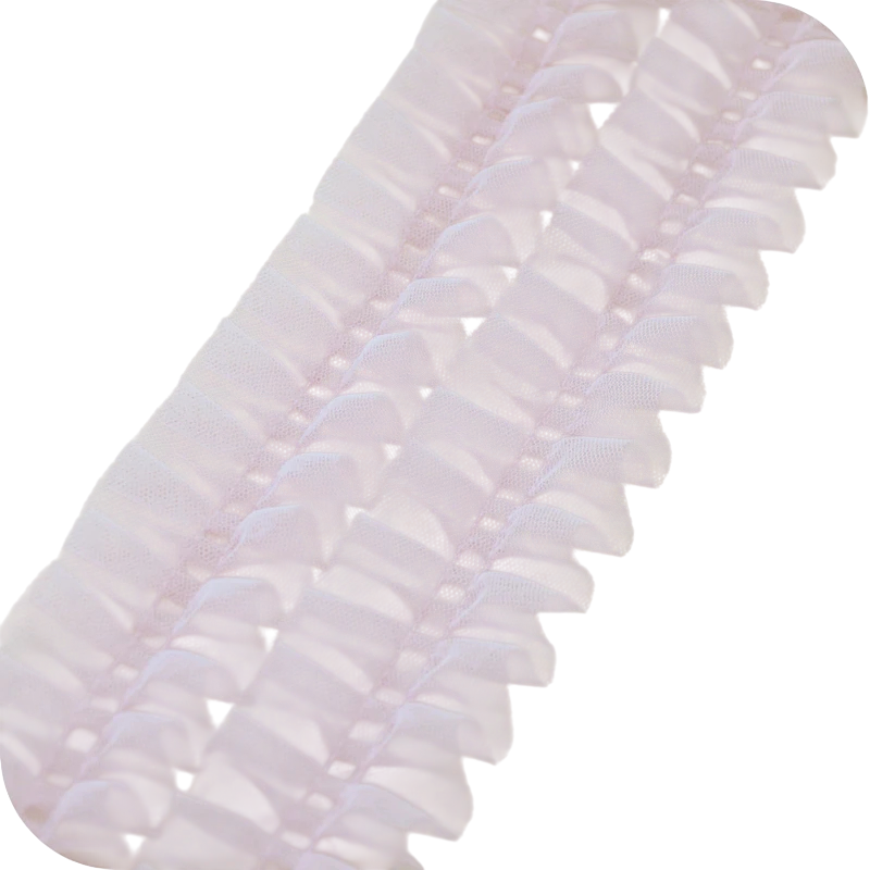 A dekoratív tylós csipke ráncolt struktúrával nagyszerű kiegészítő kreatív alkotásokhoz, varráshoz és dekoráláshoz. Finom hálós szerkezete nagyon könnyed és elegáns hatást kelt, és lágy dekoratív megjelenést ad a termékeknek. 5 cm szélesség és 1 m hosszúság ideális méretet biztosít a divatkiegészítők, ruhák díszítése vagy dekorációk készítése során.