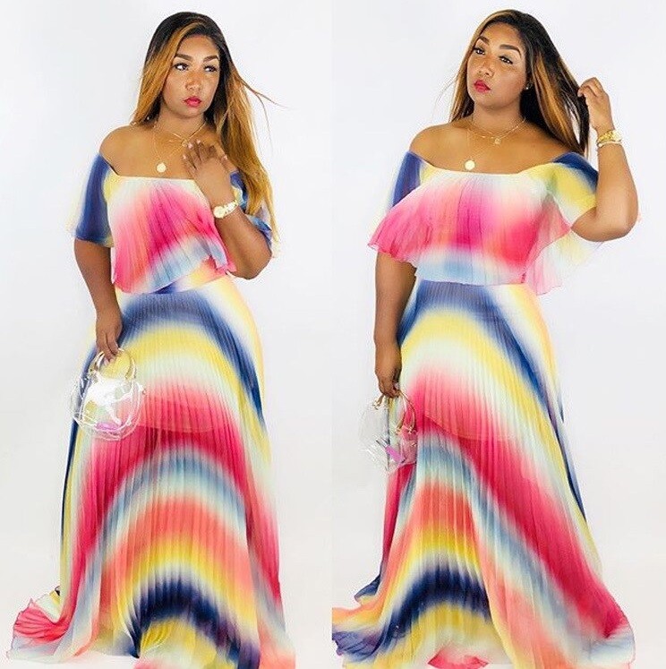 Női nyári maxiruha szivárvány színben.